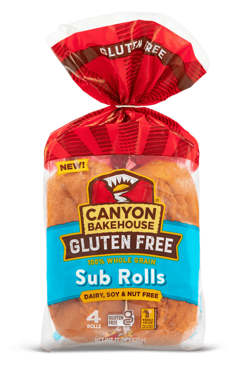 Canyon Bakehouse® artisan-inspired gluten-free Sub Rolls have a crisp outer crust with a soft, pillowy texture that’s ready to take the heat as a toasted sub or piled high with your deli creations! Certified Gluten-Free, these rolls are also free from dairy, nuts and soy and baked with whole grains.