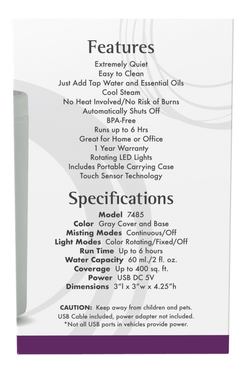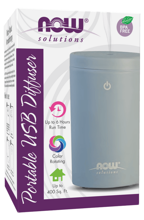 NOW® Solutions Portable USB Oil Diffuser unites scientific innovation with the timeless tradition of aromatherapy to create a portable, BPA-free diffuser that uses only tap water and your favorite essential oils. Instead of heat, this contemporary diffuser utilizes high frequency, ultrasonic electrical vibrations to create an ultra-fine mist, which helps to maintain essential oil integrity and holistic properties. With an automatic shut-off and up to 6 hours of whisper-quiet operation, this portable diffuser makes enjoying aromatherapy on-the-go a breeze.