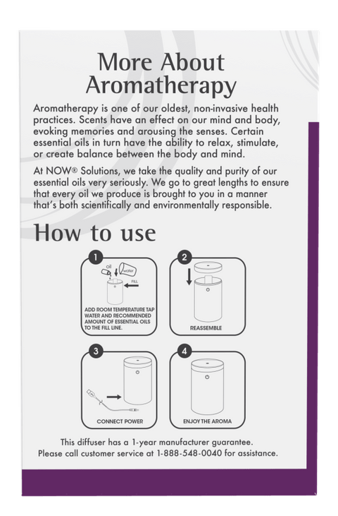 NOW Portable USB Ultrasonic Oil Diffuser Instruction Manual