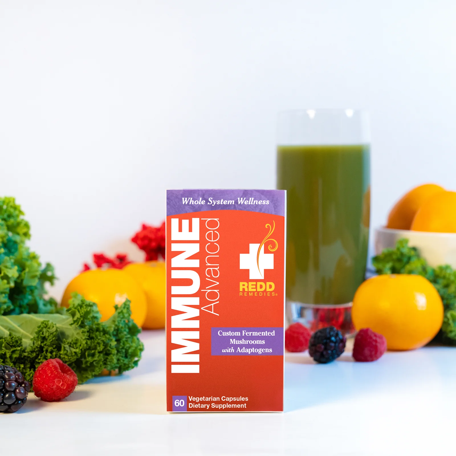 Immune Advanced 1) nourish healthy immunity with a focus on the liver, your main immunological organ,* 2) opens up healthy detoxification pathways,* 3) provides adaptogens with powerful stress-relieving properties to support healthy immunity.*